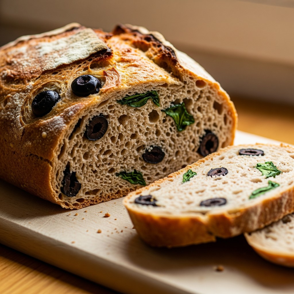 Homemade Wholemeal Bread with Olives & Spinach