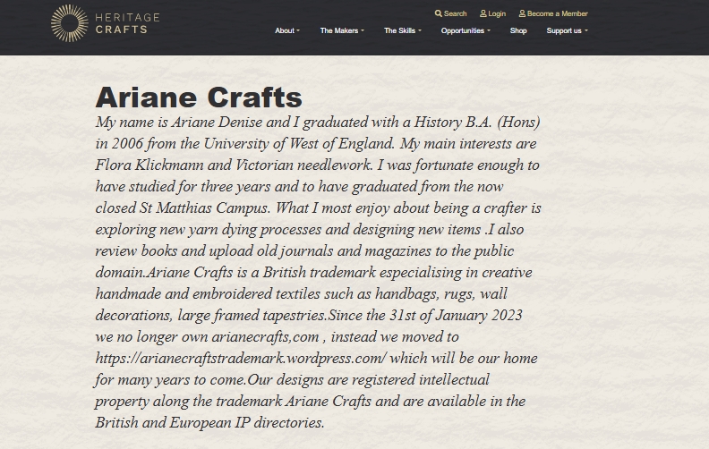 The value of Ariane Crafts has evolved from a personal blog to a British trademark that includes a dynamic platform of creation, preservation and transmission of artistic and cultural practices applied to several mediums.